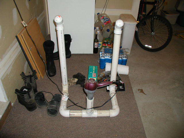 Here is a cheap way to make a boot dryer out of an old hair dryer and some PVC fittings. Keeps your boots dry and your feet toasty warm. ... View Video